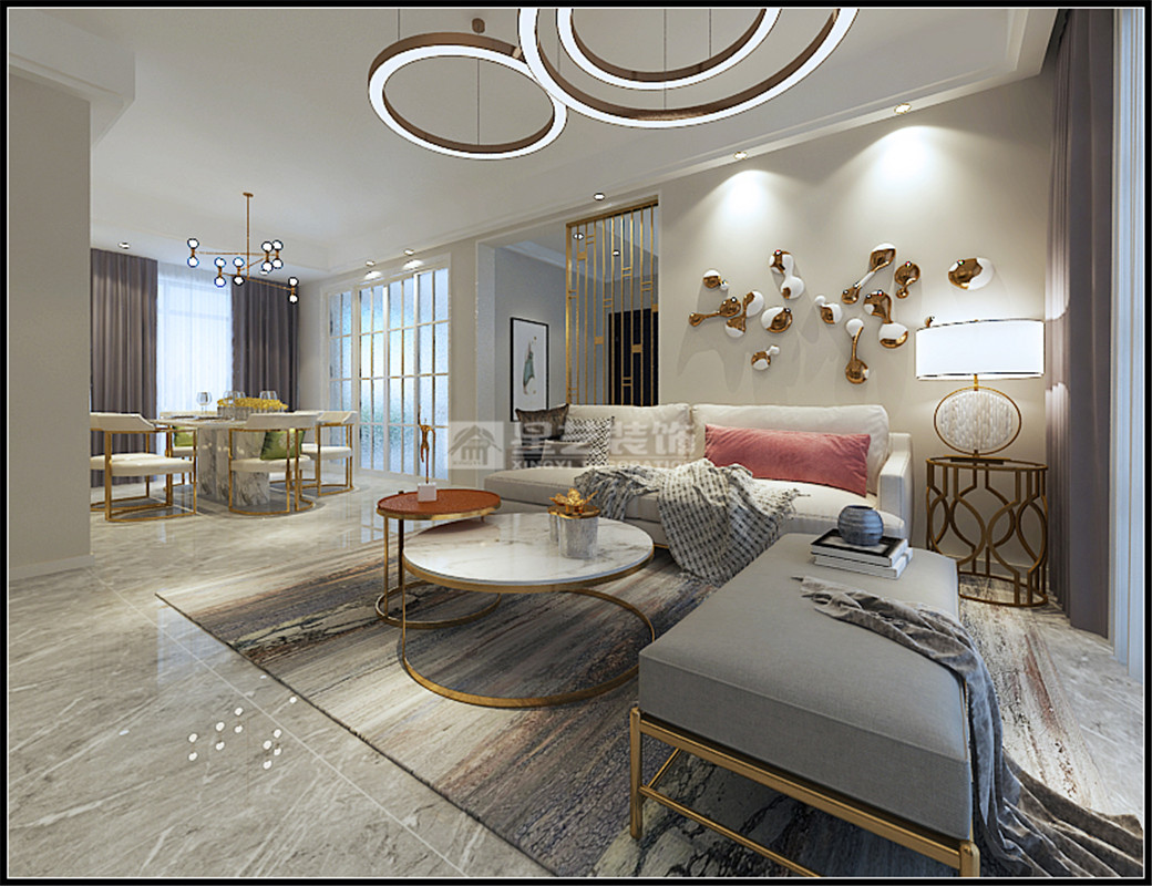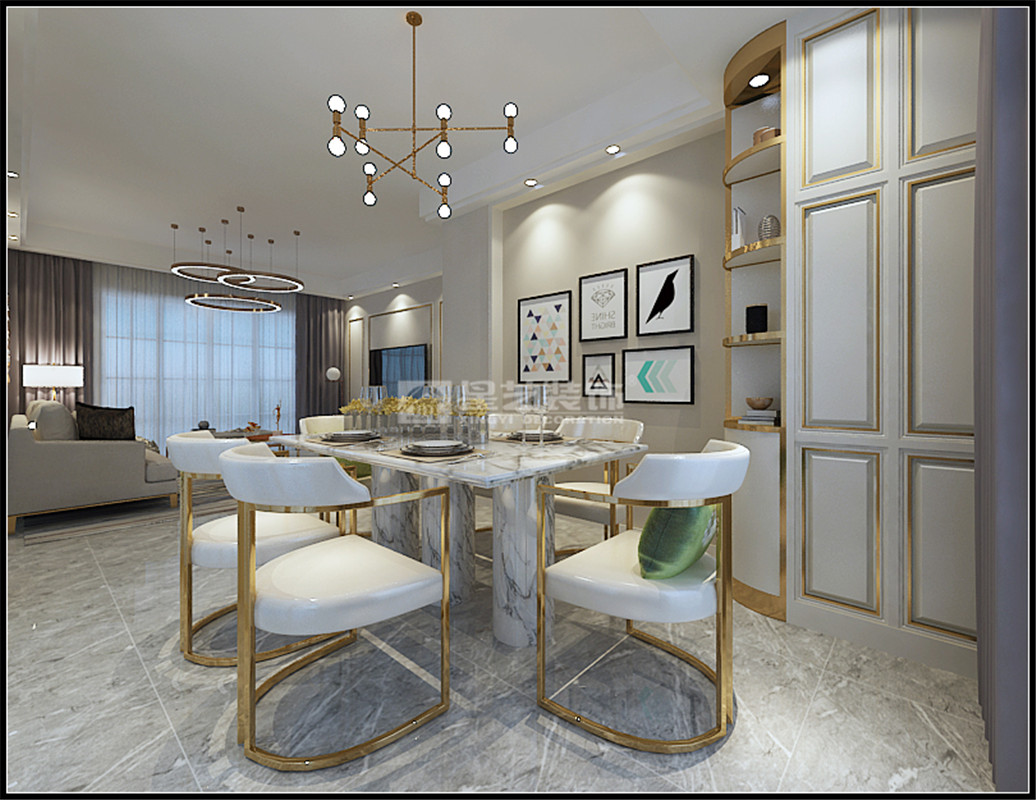 現代輕奢風格表達的是一種低調高品質的生活追求,簡潔明朗的線條,溫馨柔和的色彩搭配,金屬材質點綴勾勒精致的輪廓,打造小資的生活情調。