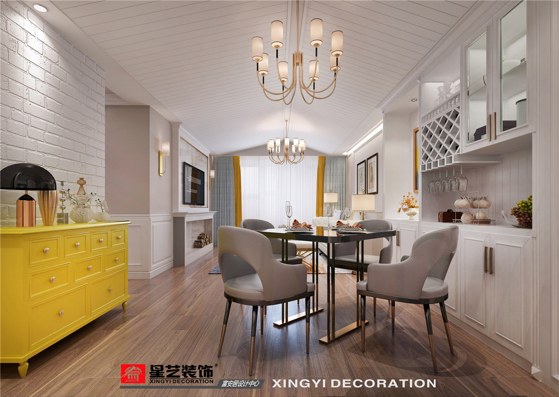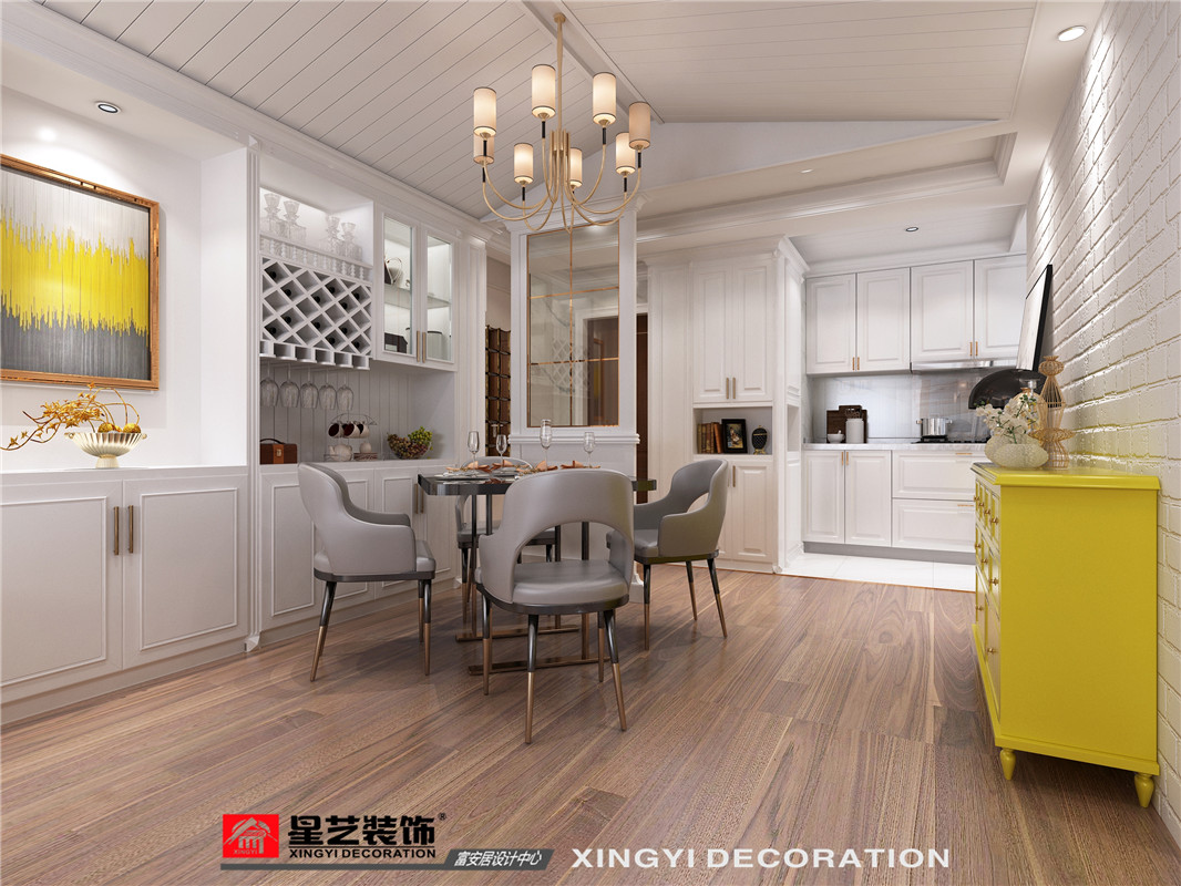 業(yè)主對設(shè)計及呈現(xiàn)效果的要求相對較高,所以在選材用材方面都朝相對高端的品牌來選擇。業(yè)主30歲出頭職場女性,自身審美水平較高,房子常住人口只有業(yè)主和她5歲的女兒,擁有一套美式風(fēng)格的房子是業(yè)主一直沒有實(shí)現(xiàn)的夢想,護(hù)墻板和文化磚的使用也是業(yè)主著重強(qiáng)調(diào)必須要運(yùn)用的,白色、粉色、紫色是業(yè)主和女兒最喜歡的顏色,業(yè)主表示她和女兒都有一顆浪漫公主心。布局上打破常規(guī)的格局,公共區(qū)域形成環(huán)形空間,營造一個圍合溫馨的親情空間。用色上主體為白色,主臥和女兒房采用了紫色和粉色作為主調(diào),滿足業(yè)主對色彩選色的期待。房子凈高2.75米,大梁40公分,采用了斜頂?shù)脑O(shè)計,更好的隱藏了大梁,向上的延伸感也拉高了空間。