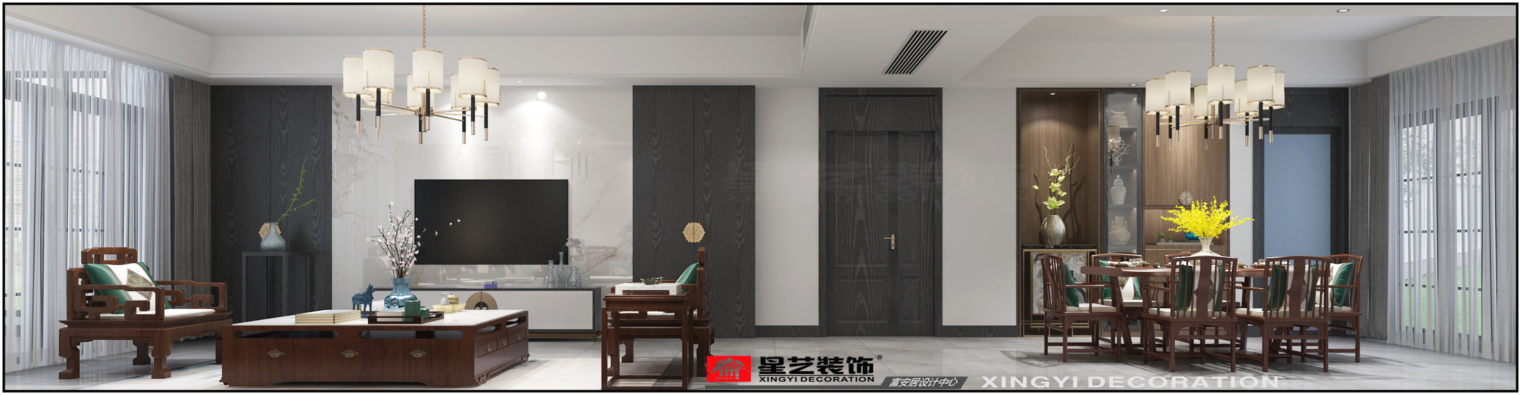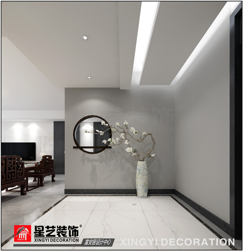 業(yè)主是一位90后妹子,房子為父母贈與的婚房,同時父親贈送一套紅酸枝十件套沙發(fā)及餐桌椅,為了搭配起這套家具,把風格定為新中式風格。要求不要過于中式,希望簡約有意境??紤]到業(yè)主年紀較輕,傳統(tǒng)的中式風格與其不符,業(yè)主又喜歡冷色調(diào),因此在設(shè)計上采用了黑白灰為主調(diào)的新中式風格。以塊面色彩作為裝飾的主要手法,搭配具有中式元素的小裝飾,大面積的白墻搭配黑色護墻板,黑白碰撞使空間層次分明,大面積灰色地面作為過度色彩,令空間既有中式韻味又不乏現(xiàn)代風格的簡練大氣之感。