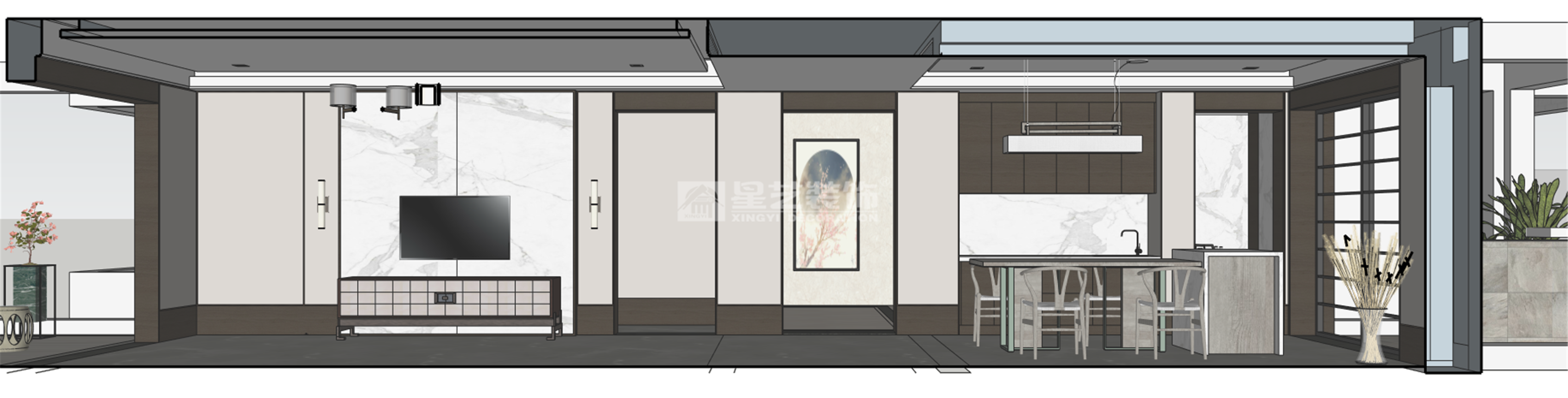 新中式風格是繼承一種既繼承了中國古典園林的基本原素又融入現(xiàn)代簡約的幾何圖案及線條的設計風格。在室內色彩方面,本方案以藍色,金黃色,玉脂白,水墨黑和原木色來打造新中式的氣氛。除了保留中式韻味外,還加了大理石、玻璃、燈帶、白色線條等現(xiàn)代造型,簡潔的線條勾畫出空間的層次感,家具顏色以深棕色為主色調,給人一種深厚沉穩(wěn)的感,極大滿足了現(xiàn)代人追求的時尚感和實用的原則。