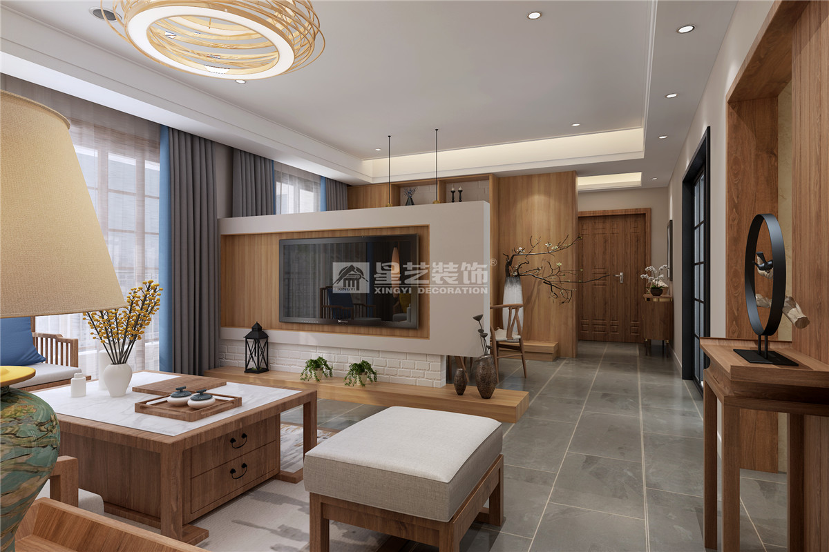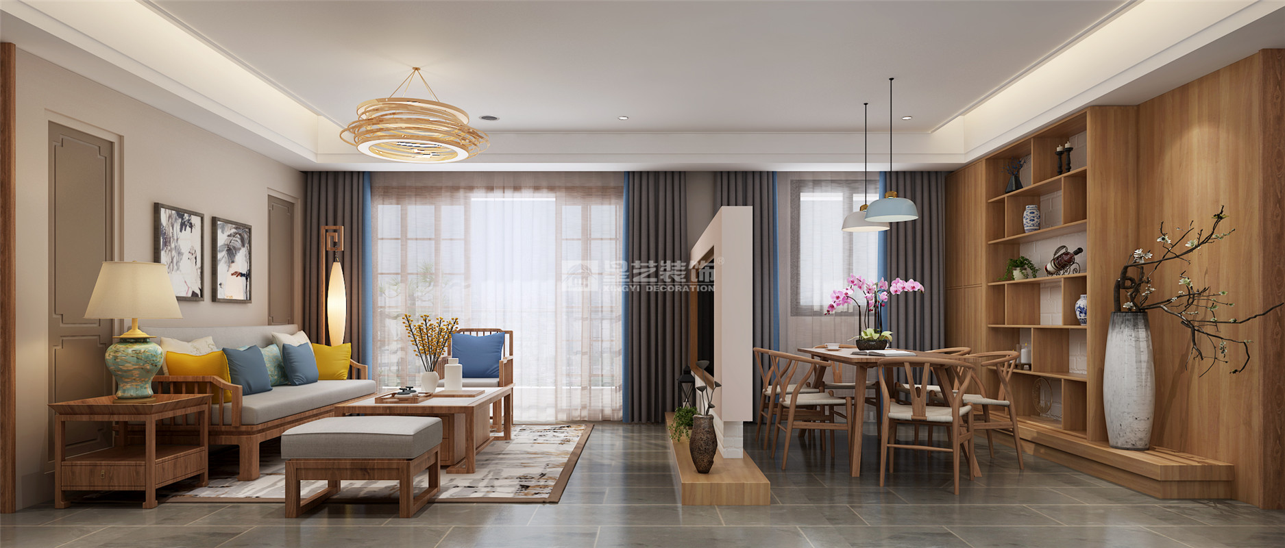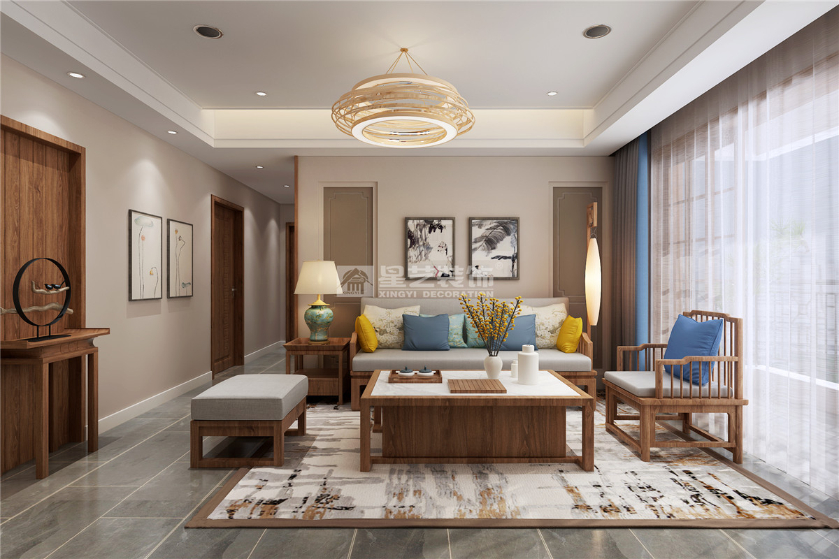 現(xiàn)代中式風(fēng)格,以簡約的表現(xiàn)形式來滿足人們對空間環(huán)境那種性感的、本能的和理性的需求,這是當(dāng)今國際社會流行的設(shè)計(jì)風(fēng)格——簡潔明快的簡約主義。該方案主要色系包括米黃色、淺棕色、原木色,相互融合表現(xiàn)了居住者向往安靜、舒適、高雅的生活空間。吊掛帶有時(shí)尚感的燈,以簡約的造型、完美的細(xì)節(jié),營造出時(shí)尚前衛(wèi)的感覺。簡單、自然的生活空間能讓人身心舒暢,感到寧靜與安逸,讓我們在紛擾的現(xiàn)實(shí)生活中找到平衡,締造出一個(gè)令人心馳神往的寫意空間。