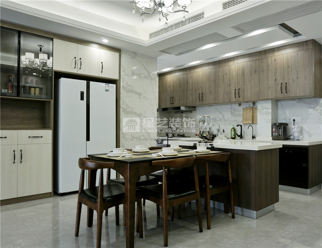 也正因?yàn)闃I(yè)主十分信任星藝,所以星藝也回以高品質(zhì)的服務(wù);在溝通設(shè)計(jì)時(shí),業(yè)主想把自己房子的空間合理規(guī)劃好,希望設(shè)計(jì)得簡單實(shí)用、收納性極強(qiáng),滿足日常生活所需?;诖它c(diǎn),設(shè)計(jì)師設(shè)計(jì)時(shí)便以現(xiàn)代風(fēng)格為主調(diào),用黑色線條分割大塊灰色色塊,搭配原木色家具和別具一格的收納柜,用小部分亮色點(diǎn)綴,整個(gè)空間看起來既時(shí)尚又不失溫馨實(shí)用。考慮到臺(tái)灣同胞極為講究人與人之間相處的溫情,是以廚房設(shè)計(jì)成開放式,用島臺(tái)將餐廳和廚房隔開,既能滿足家人間的互動(dòng),也有助于朋友間小酌的簡單社交需求。臥室也延續(xù)了現(xiàn)代風(fēng)格的極簡設(shè)計(jì),大塊暖色系的色塊搭配亮色的軟裝和畫飾,勾勒出輕松溫馨的氛圍,更助益于睡眠。書房的設(shè)計(jì)業(yè)主也十分看重,因?yàn)橛袝r(shí)候迫不得已需要在家辦公,所以在設(shè)計(jì)的時(shí)候設(shè)計(jì)師既要滿足了業(yè)主想要的強(qiáng)大收納,也要滿足業(yè)主休閑式的閱讀和辦公。衛(wèi)生間設(shè)有浴缸,沐浴時(shí)泡個(gè)熱水澡,一去白天里生活瑣碎的疲憊。大到客廳,小到衛(wèi)生間,不難看出業(yè)主是個(gè)極為注重生活品質(zhì)的人,而這正與星藝裝飾所追求的品質(zhì)家居理念所契合,無論是生活品質(zhì),亦或是產(chǎn)品品質(zhì),皆是客戶所想,星藝所精,經(jīng)典設(shè)計(jì),為愛筑巢。