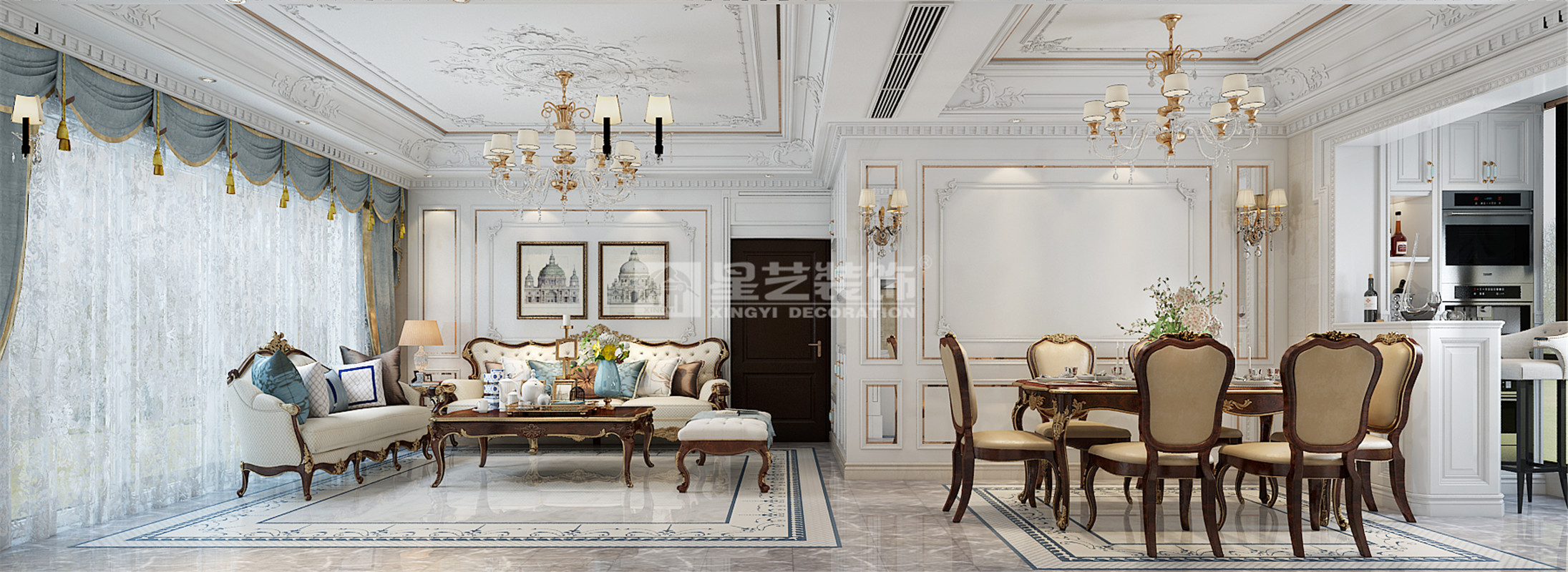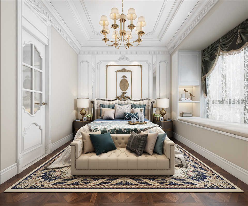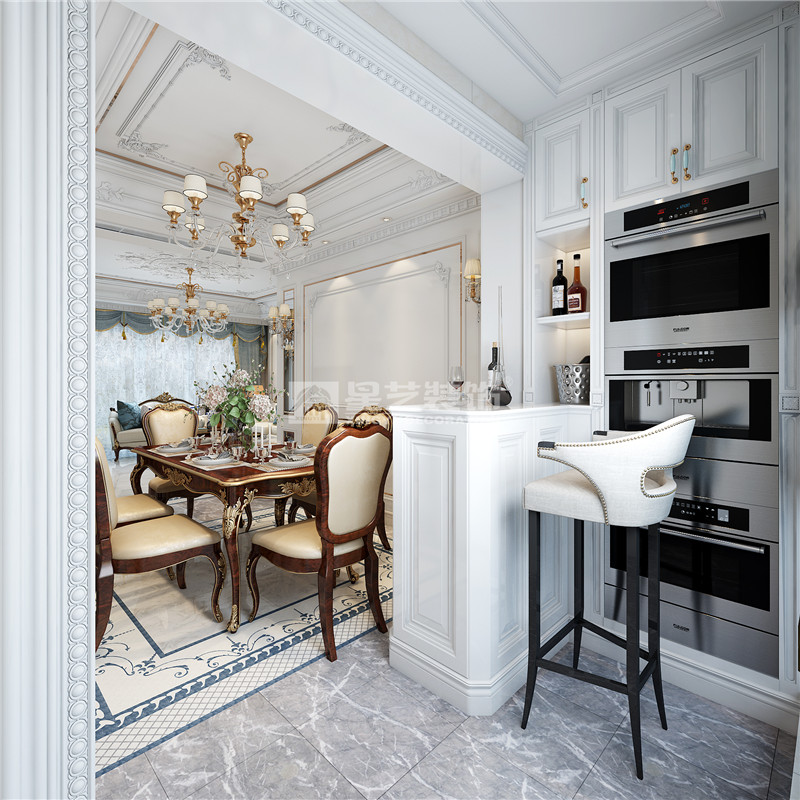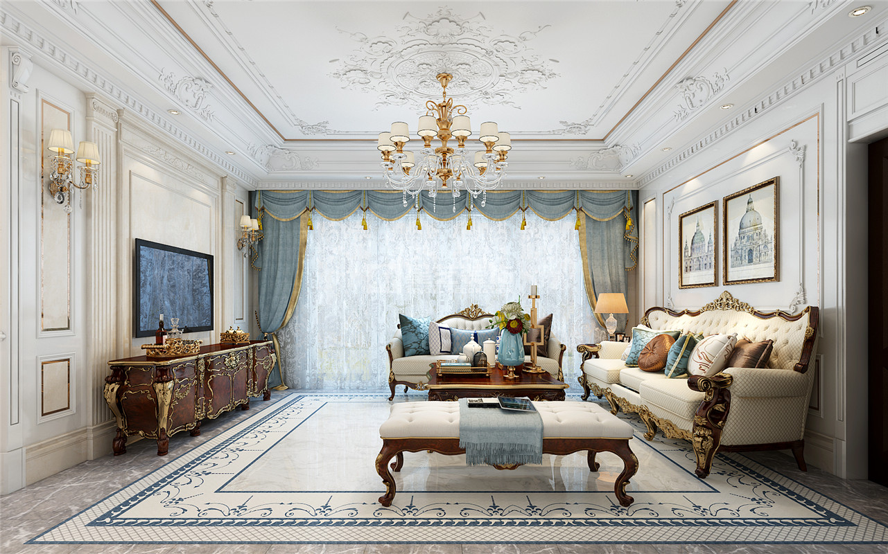 本案空間里隨處可見的對稱美,設(shè)計師運用考究的雕花與筆直的石膏線勾勒出純正的法式風(fēng)情,加上典雅別致的家具搭配色澤明亮的水晶燈、繁美的窗簾等更顯得優(yōu)雅矜貴,整個空間看起來毫無一絲古板生硬,反而更顯靈動浪漫。