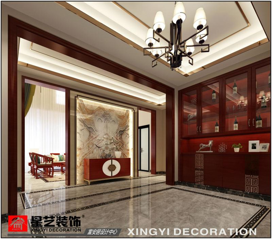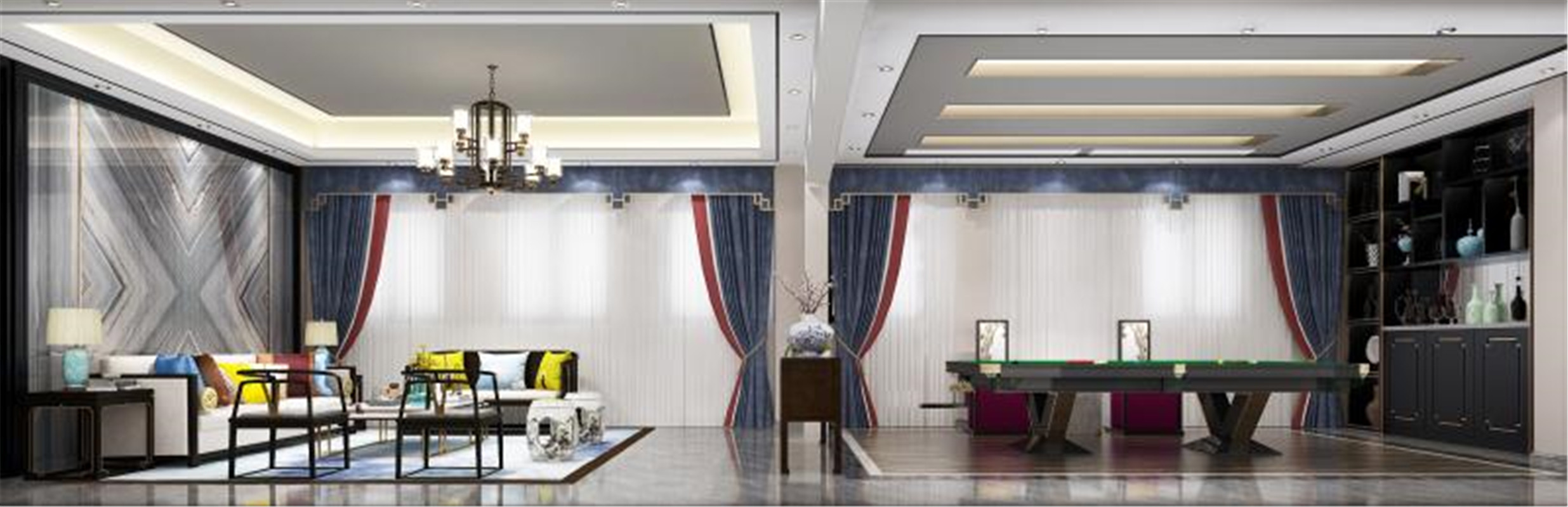 本案為為四層房屋結(jié)構(gòu)。負(fù)一到二樓,業(yè)主主要用途定義為周末家人朋友放松的會(huì)所,偏愛(ài)紅木類家具,白蠟?zāi)炯揖撸矏?ài)中國(guó)文化,風(fēng)格定義為新中式。三樓作為女主偏愛(ài)的歐式輕奢,搭配金屬線條歐式紋樣,營(yíng)造奢華浪漫氣息的氛圍。平面格局以四合院圍合形式布局,總體布局對(duì)稱均衡,端正穩(wěn)健。在設(shè)計(jì)效果中,中式元素與現(xiàn)代材質(zhì)巧妙兼容,以簡(jiǎn)飾繁,線條明朗,呈現(xiàn)出大道至簡(jiǎn)、清遠(yuǎn)悠長(zhǎng)的東方氣韻。在色彩上恰到好處的色彩,就好似吸取了萬(wàn)物之靈氣般生機(jī)盎然。無(wú)需繁雜的“濃妝”,只需對(duì)空間施于“淡抹”,也可讓人感受到空間帶來(lái)的溫潤(rùn)氣質(zhì)。