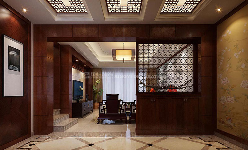 在室內(nèi)布置、線形、色調(diào)以及家具、陳設(shè)的造型等方面,吸取傳統(tǒng)裝飾“形”、“神”的特征,以傳統(tǒng)文化內(nèi)涵為設(shè)計(jì)元素,革除傳統(tǒng)家具的弊端,去掉多余的雕刻,糅合現(xiàn)代西式家居的舒適,根據(jù)不同戶型的居室,采取不同的布置。中國傳統(tǒng)居室非常講究空間的層次感。這種傳統(tǒng)的審美觀念在中式風(fēng)格中,又得到了全新的闡釋:依據(jù)住宅使用人數(shù)的不同,做出分隔的功能性空間,采用“啞口”或簡(jiǎn)約化的“博古架”來區(qū)分;在需要隔絕視線的地方,則使用中式的屏風(fēng)或窗欞。通過這種新的分隔方式,單元式住宅就能展現(xiàn)出中式家居的層次之美