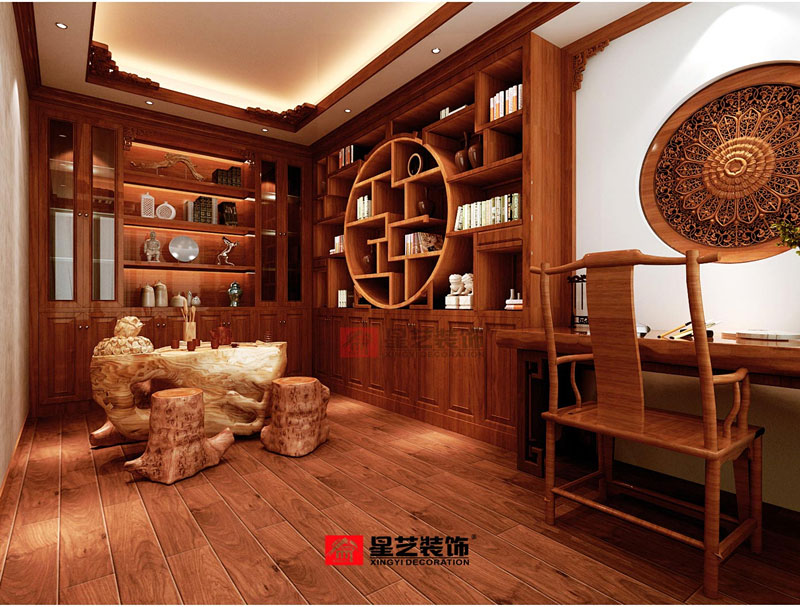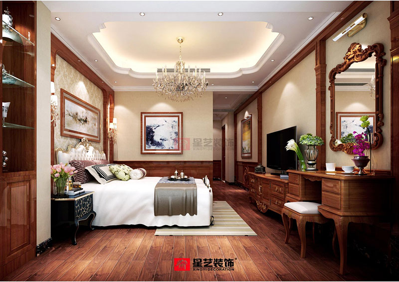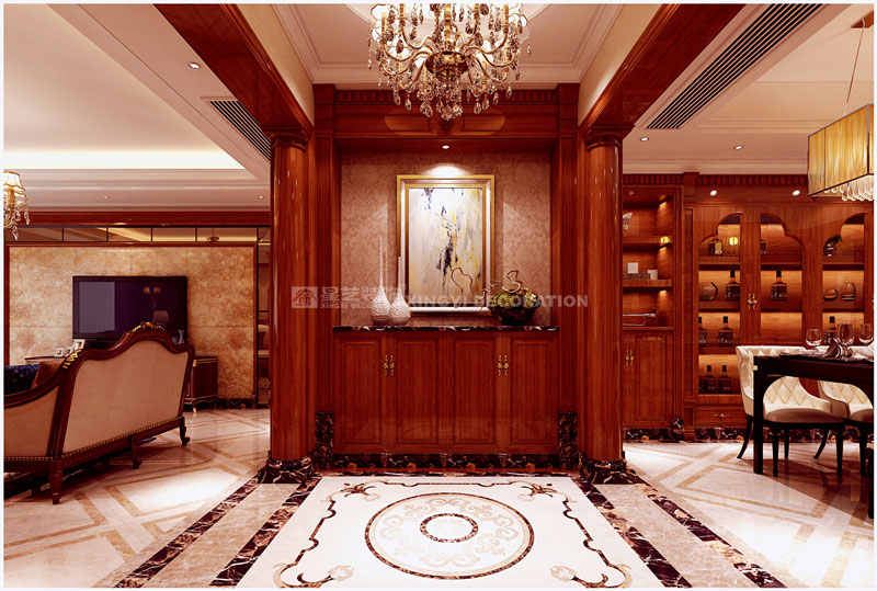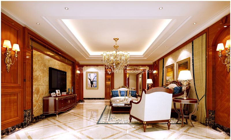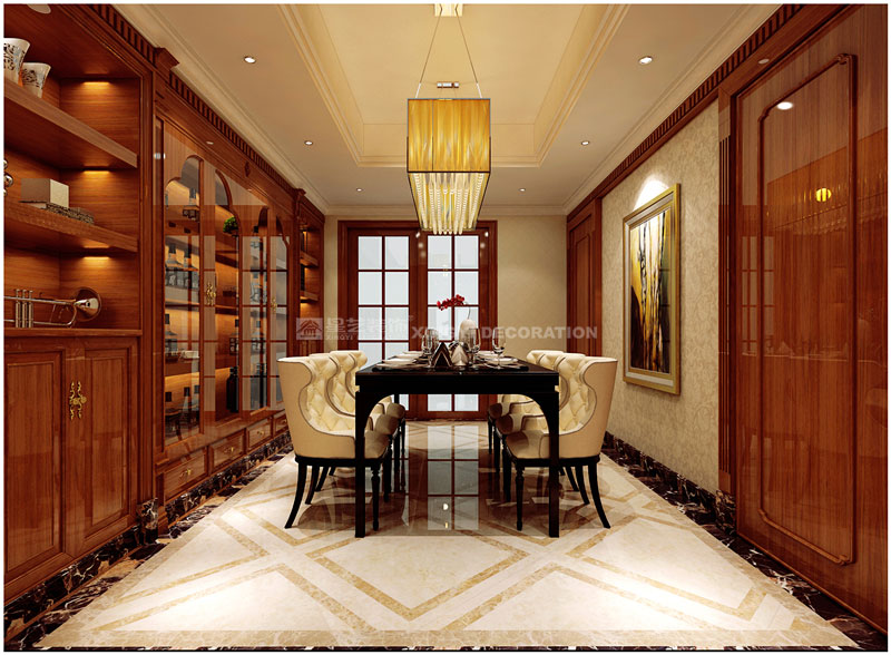 本案在風(fēng)格定位時,定位為美式風(fēng)格。美式風(fēng)格家居如同美國獨立精神一般,講究的是通過生活經(jīng)歷去積累自己對藝術(shù)的啟發(fā)及對品味的喜好,同時空間也盡量表現(xiàn)出華美、富麗、浪漫和舒適的氛圍。在設(shè)計上,我們減少雕花、弧形等裝飾,采用直線、純色封能體現(xiàn)美式風(fēng)格的真諦。在茶室的設(shè)計上,因為是相對獨立的空間,我們跳開美式風(fēng)格,采用了傳統(tǒng)中式的設(shè)計,體現(xiàn)出中式茶室的傳統(tǒng)韻味和業(yè)主的獨特品味。