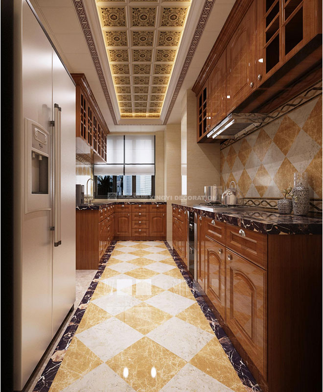 金源一品205平裝修案例設(shè)計說明:本案為金源一品大戶型平層,通過與業(yè)主前期溝通,針對本戶型在空間上的一些不足之處,我們進(jìn)行了有針對性的局部改造。一個是入戶,過于直通,直對主臥大門。在對于私密性和中國傳統(tǒng)的風(fēng)水習(xí)慣上都有所違背,因此我們在入戶出改造出入戶玄關(guān)和換鞋區(qū)域,這樣既能保證私密性的需求,又滿足了功能性的需求。其次是在于廚房的部位,由于原建筑廚房的面積比較有限,不能滿足業(yè)主日常生活的需要。因此,也對廚房面積進(jìn)行了一定的擴充,從而滿足業(yè)主使用上的需求。