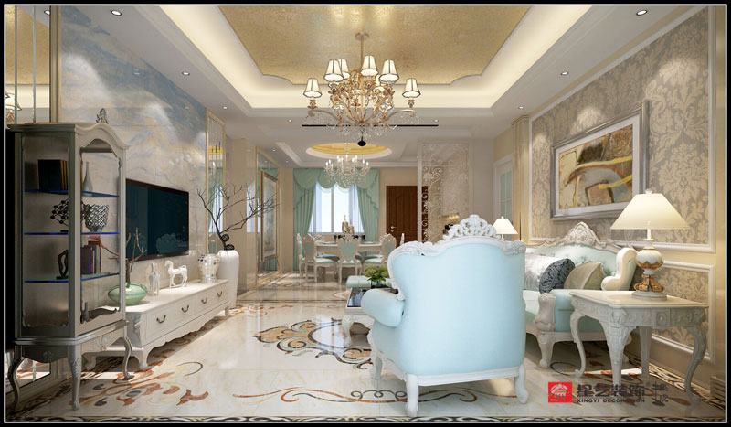 廣源國際社區(qū)142平裝修設(shè)計說明:歐式異域情懷一直為東方人們所向往,此案例是簡約的歐式情懷,以簡潔的線條,加上藍(lán)色為主的搭配,給人一種很清新自然的感覺。空間以藍(lán)白為主的色調(diào)再配上一些重色調(diào),使空間更顯得沉穩(wěn)大氣。加之高山流水的背景墻畫,整體的空間又上了一個檔次。