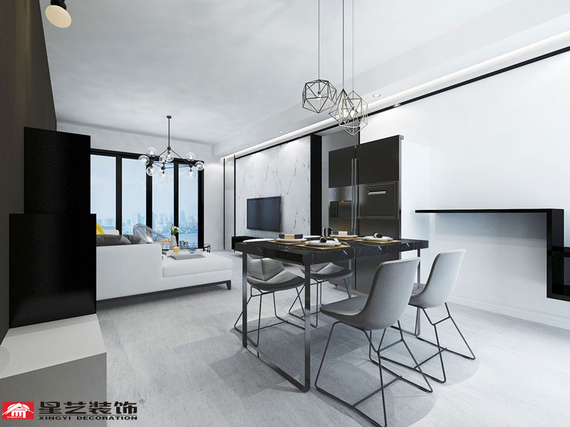 設(shè)計時候多方面考慮,最終決定運用最簡約又不失大氣的時尚“黑白灰”因素,并且采用現(xiàn)代感很強烈的“黑鈦鋼”以及“灰鏡”,在視覺上做最好的結(jié)合,使空間感加強