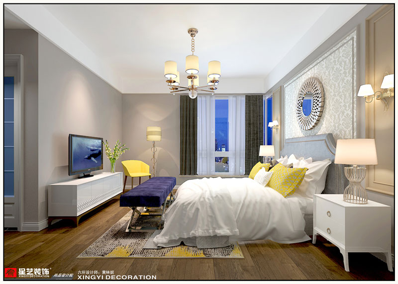此客廳的設(shè)計(jì)以平面和直線造成視覺(jué)的通透感,營(yíng)造出整個(gè)家庭的簡(jiǎn)潔風(fēng)格。白色的頂面、高級(jí)灰墻面共同組成了房間的主色調(diào),黑白灰相間的電視背景墻,淺色的沙發(fā)相互映襯、自然過(guò)渡。試圖讓生活回歸原點(diǎn),舍去繁復(fù)的設(shè)計(jì),以使用者的需求為本質(zhì),找回生活應(yīng)有的溫度。該樣板房設(shè)計(jì)以白色為基底,設(shè)計(jì)中沒(méi)有強(qiáng)烈的色彩配搭,而以簡(jiǎn)單舒適的氣質(zhì)打動(dòng)人心。在燈光的調(diào)諧下,透過(guò)自然的色彩調(diào)諧,舒適的材質(zhì)搭配與明朗的比例分割,一切顯得時(shí)尚簡(jiǎn)約而又閑逸溫馨。