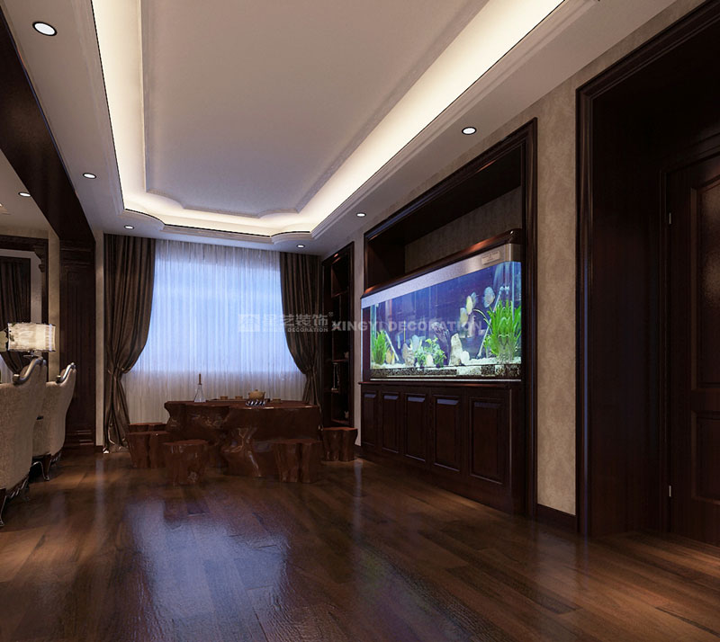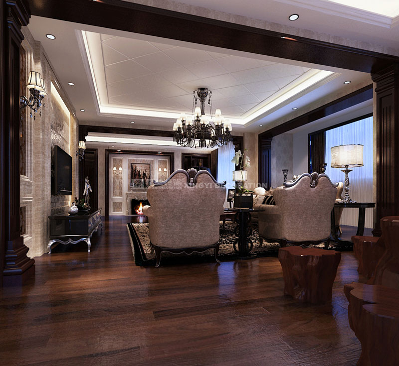 業(yè)主黃先生喜歡純正,低調(diào)奢華的美式風(fēng)格,希望多運(yùn)用暗棕色的家具和配飾,來凸顯出主人氣質(zhì)的沉穩(wěn)。因黃先生經(jīng)常有生意上的朋友到家里做客,所以希望客廳能有會(huì)客室的功能。