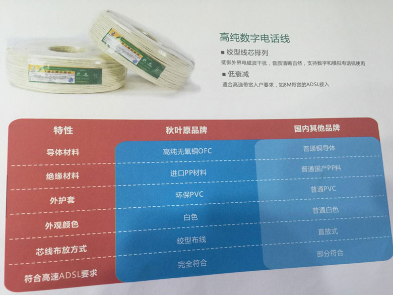 深圳秋葉原牌4芯(4*0.5㎡)電話線,以防止線路故障后,有備用線